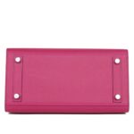 The interior is lined with soft Rose Pourpre chevre leather and features a zip pocket with an engraved Hermès pull and an additional open pocket on the opposite side for optimal organization.