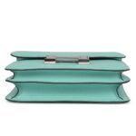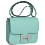 This Hermès Constance is exquisitely designed in Aqua Chevre leather with palladium hardware. It features tonal stitching, the iconic metal “H” snap lock closure, and an adjustable shoulder strap, offering both elegance and versatility.