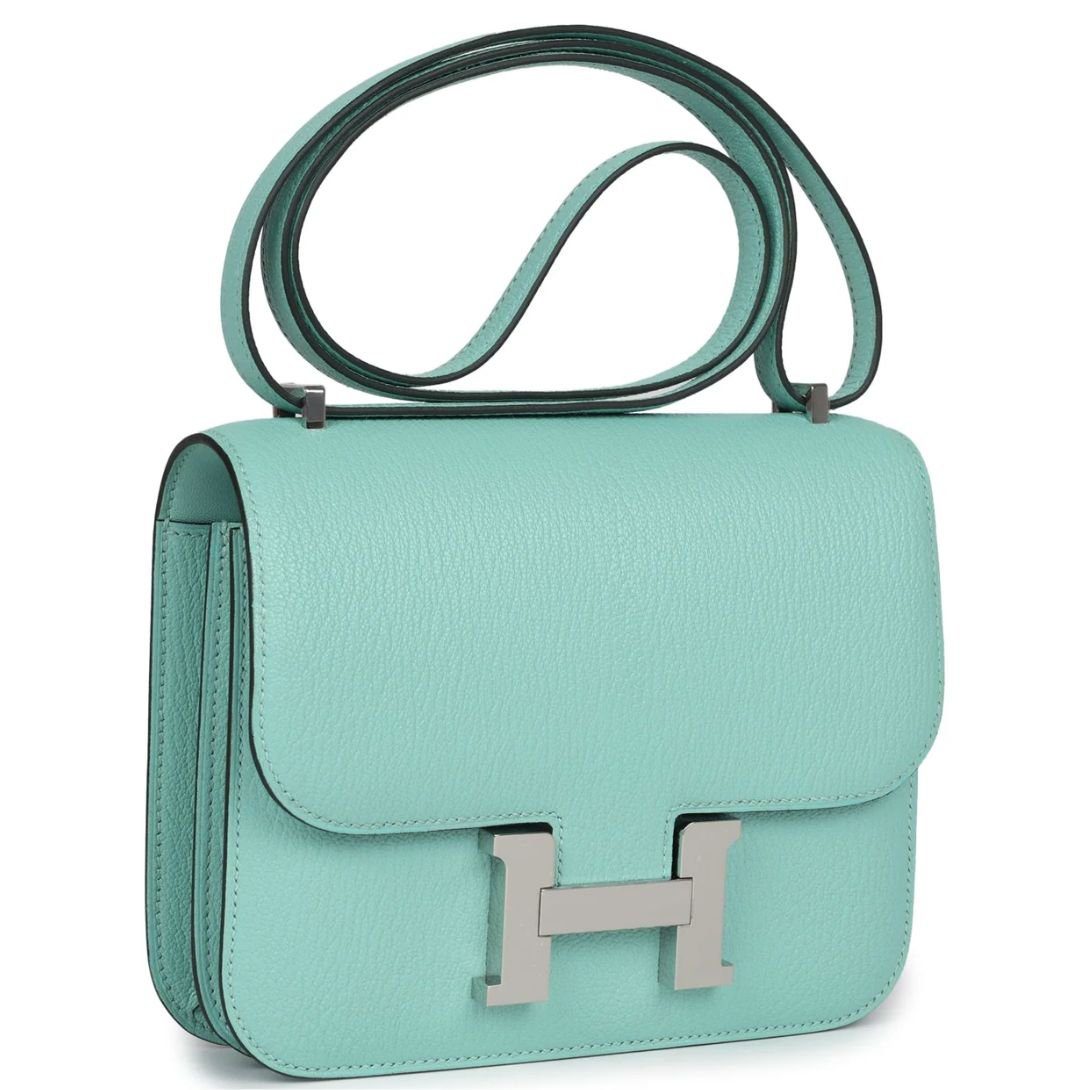 HERMÈS CONSTANCE 18 AQUA CHEVRE PALLADIUM HARDWARE