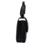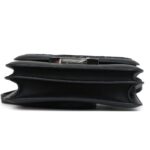 The interior is lined in luxurious Black Lambskin leather and is thoughtfully organized with two open pockets on the front wall, a removable mirror, a center divide, and a slit pocket on the back wall.