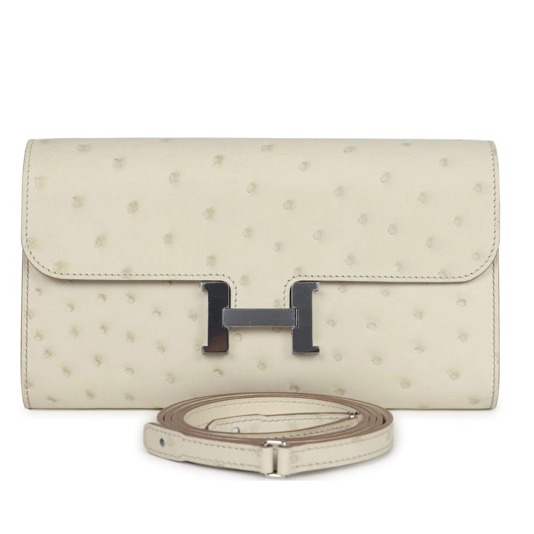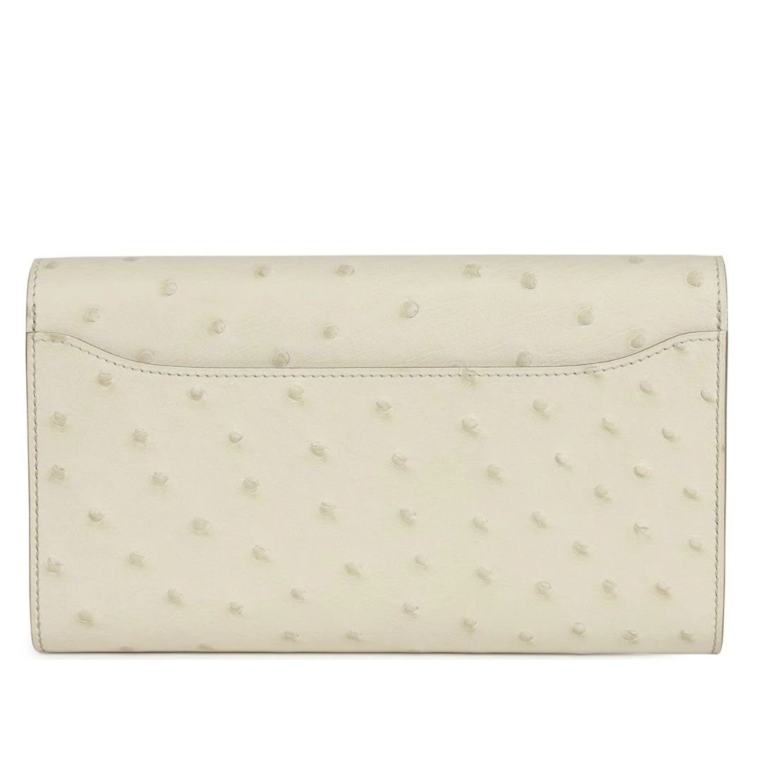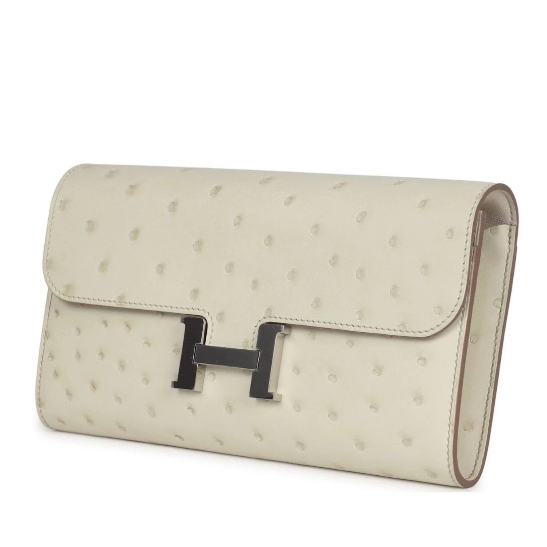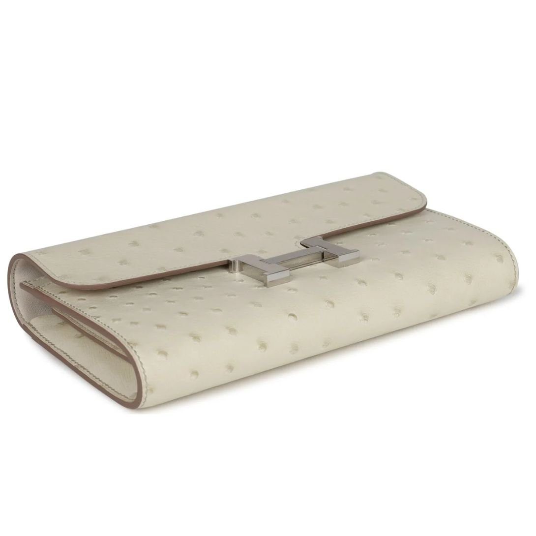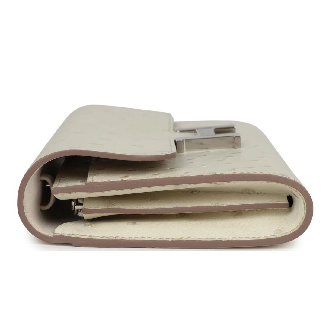 HERMÈS CONSTANCE WALLET TO GO BETON OSTRICH PALLADIUM HARDWARE