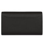 The interior, crafted from matching Black Epsom leather, provides two main compartments, six credit card slots, and a zippered center compartment with an Hermès “H” lock pull, ensuring organized storage for essentials.