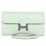 HERMÈS CONSTANCE WALLET TO GO VERT D’EAU MATTE ALLIGATOR PALLADIUM HARDWARE