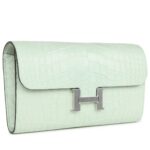 The Hermès Constance Wallet To Go in Vert D’Eau Matte Alligator blends opulence and practicality, making it an ideal addition to any Hermès collection or as a standout accessory for any outfit.