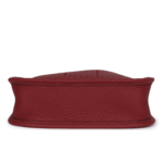 This Hermès Evelyne TPM Messenger Bag is crafted in Rouge H Clemence leather with tonal stitching and palladium hardware. It features the iconic perforated “H” circle on the front, a pull-tab snap closure, and a removable Rouge H shoulder/crossbody strap for versatility.