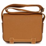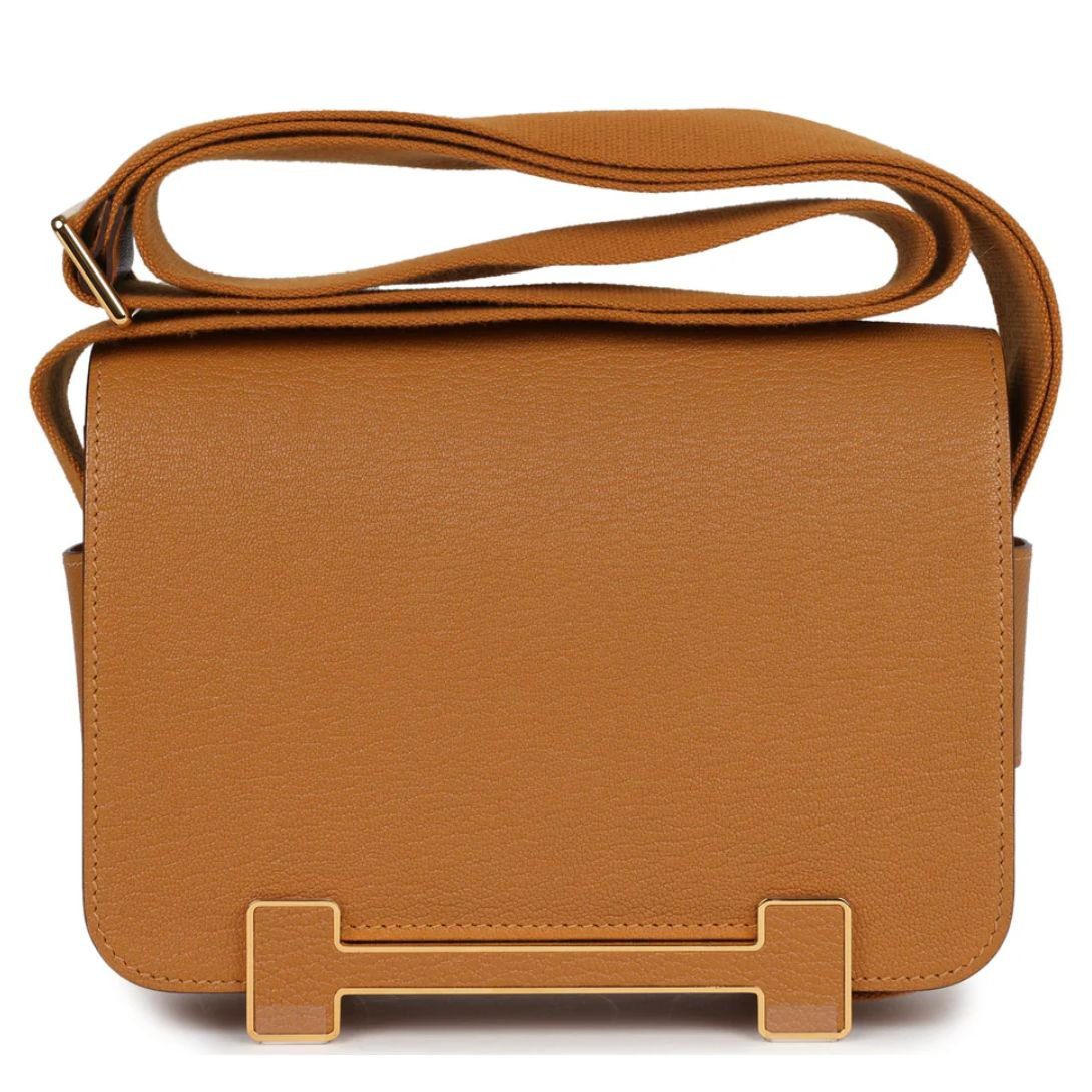 This exquisite Hermès Geta bag is crafted from luxurious Caramel Chevre Mysore leather, accented with gleaming gold hardware. The bag features tonal stitching, a sleek magnetic flap closure, and an adjustable shoulder strap, offering both functionality and refined elegance.
