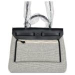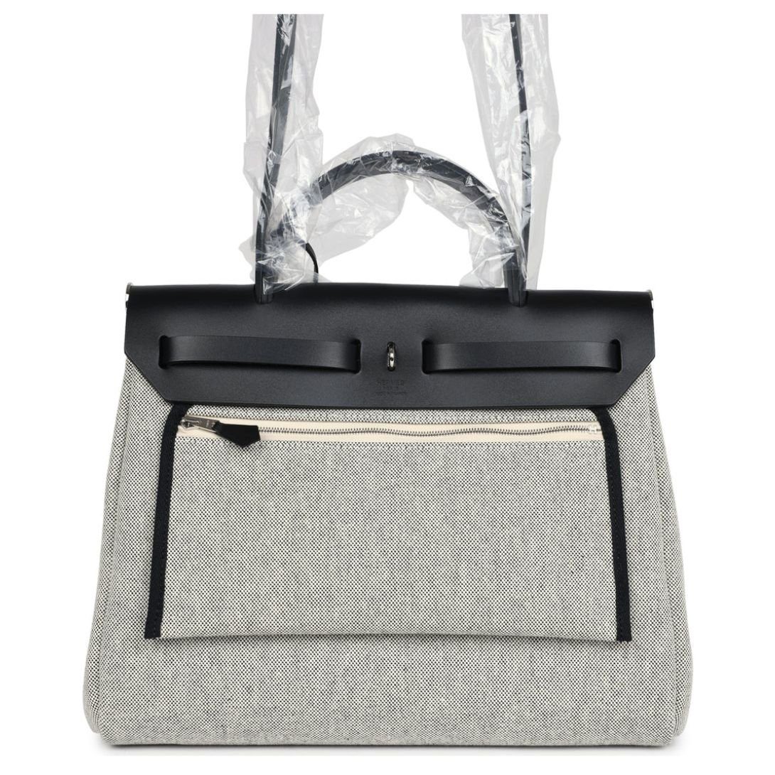 HERMÈS HERBAG ZIP 31 PM HOBNAILED BLACK AND ECRU PRINTED H PLUME CANVAS AND VACHE HUNTER PALLADIUM HARDWARE