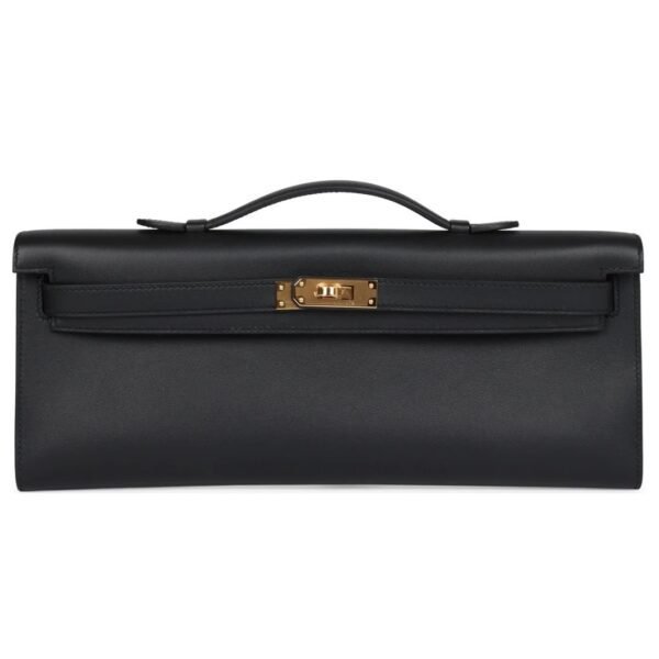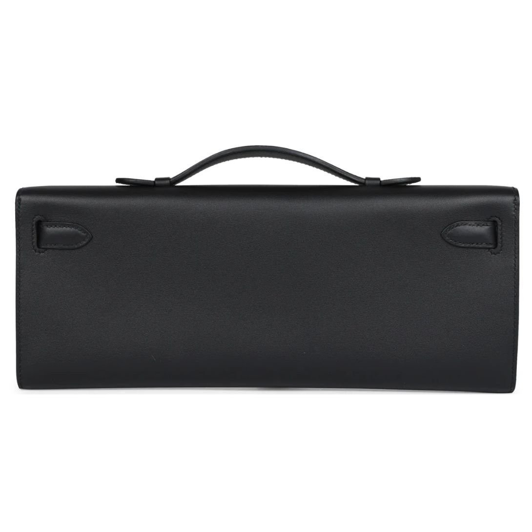 The Hermès Kelly Cut in Black Swift leather is a statement of refined luxury, perfect for evening events or as an elevated accessory to complement a chic wardrobe.