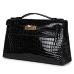 HERMÈS KELLY POCHETTE BLACK SHINY POROSUS CROCODILE GOLD HARDWARE