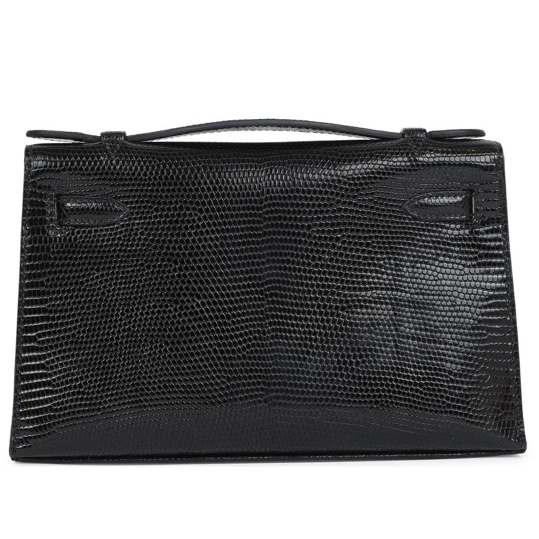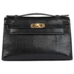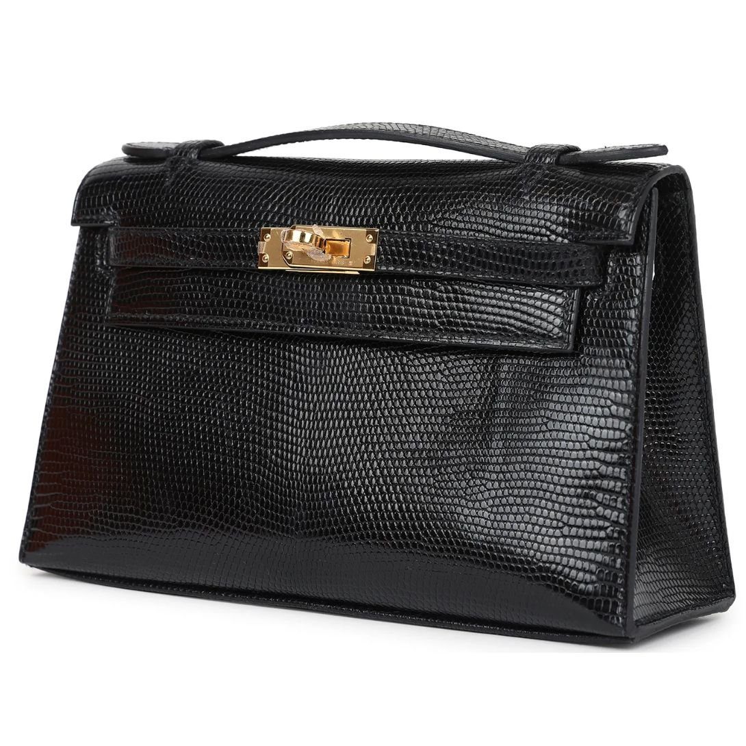 HERMÈS KELLY POCHETTE BLACK VARANUS NILOTICUS LIZARD GOLD HARDWARE