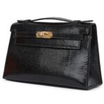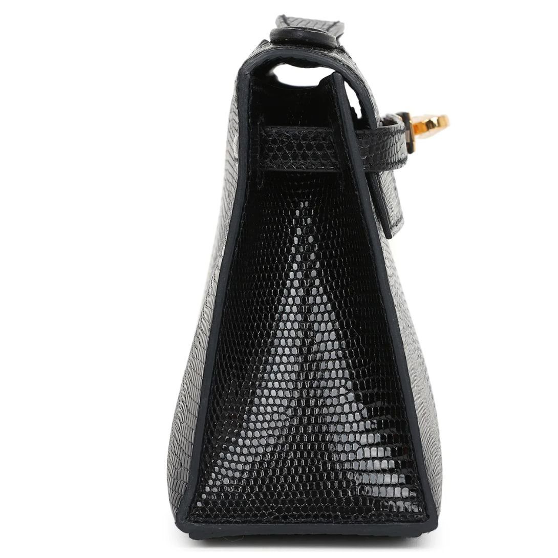 This Kelly Pochette in Black Shiny Varanus Niloticus Lizard with Gold hardware is a rare and exquisite piece, offering a combination of luxury, elegance, and craftsmanship for collectors and fashion enthusiasts alike.