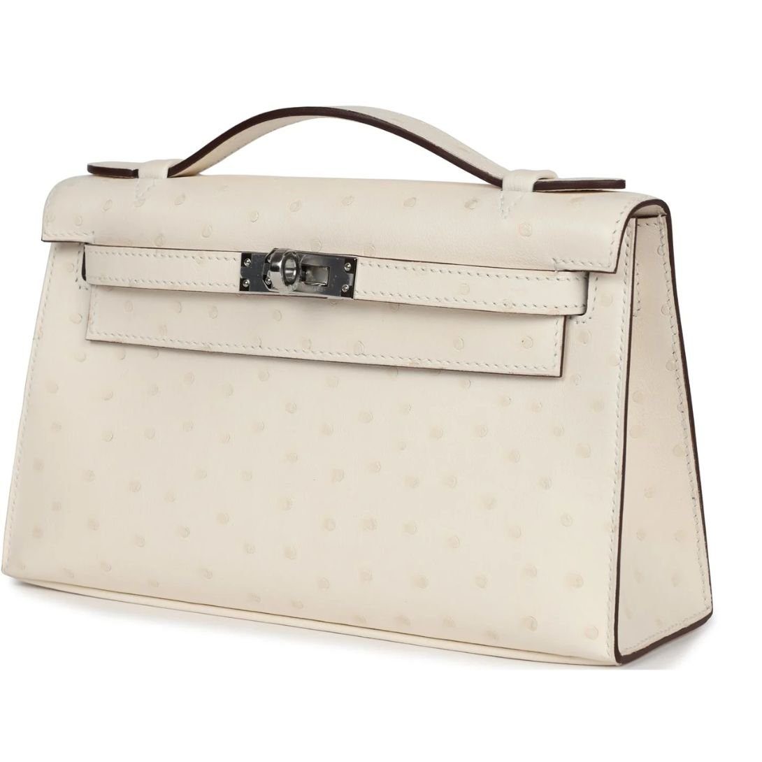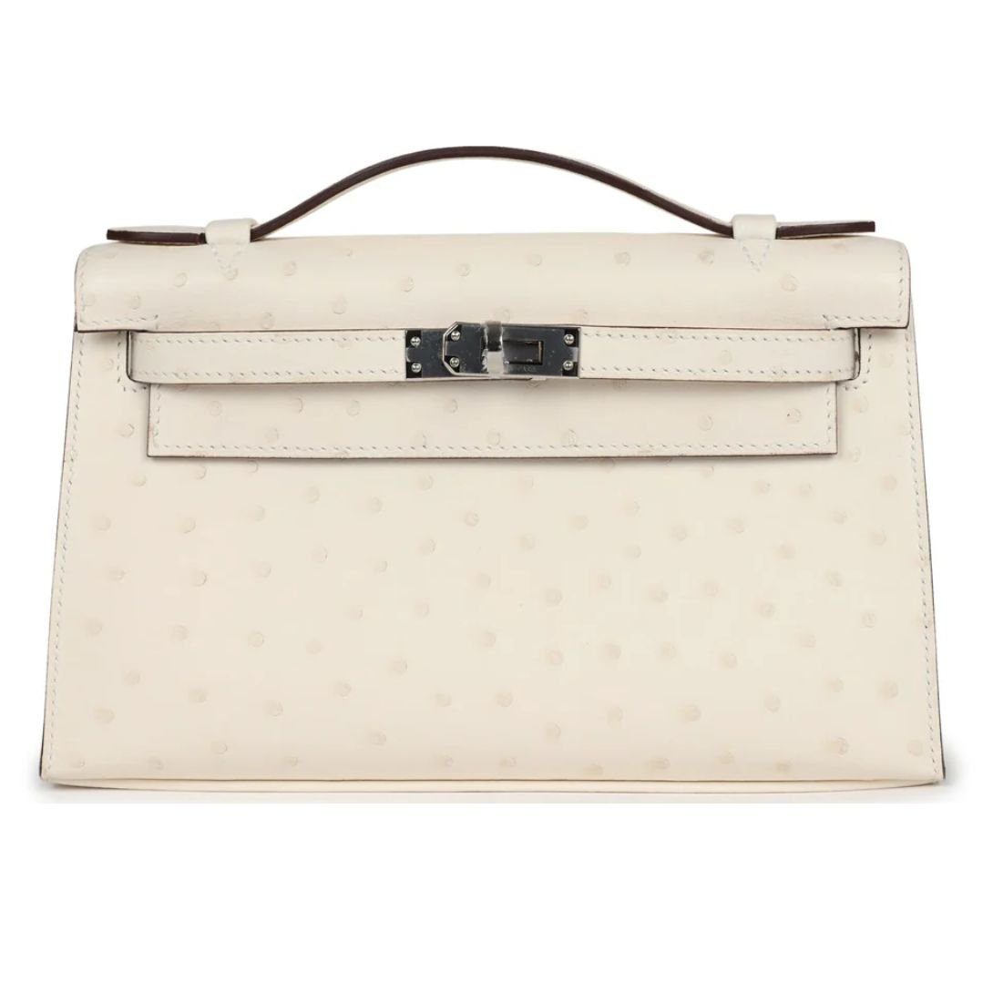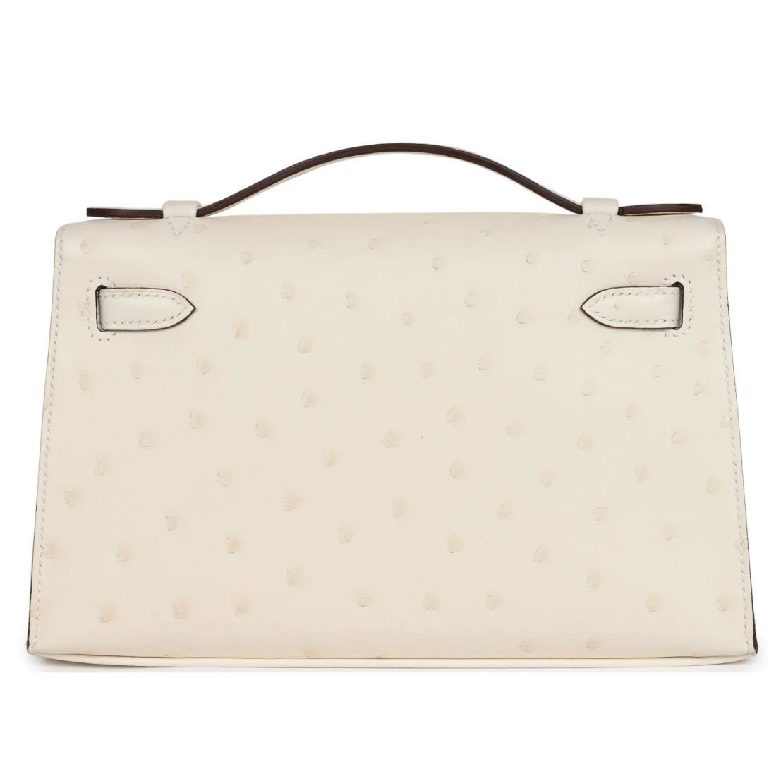 HERMÈS KELLY POCHETTE NATA OSTRICH PALLADIUM HARDWARE