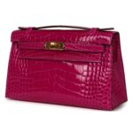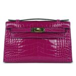 HERMÈS KELLY POCHETTE ROSE SCHEHERAZADE SHINY ALLIGATOR GOLD HARDWARE