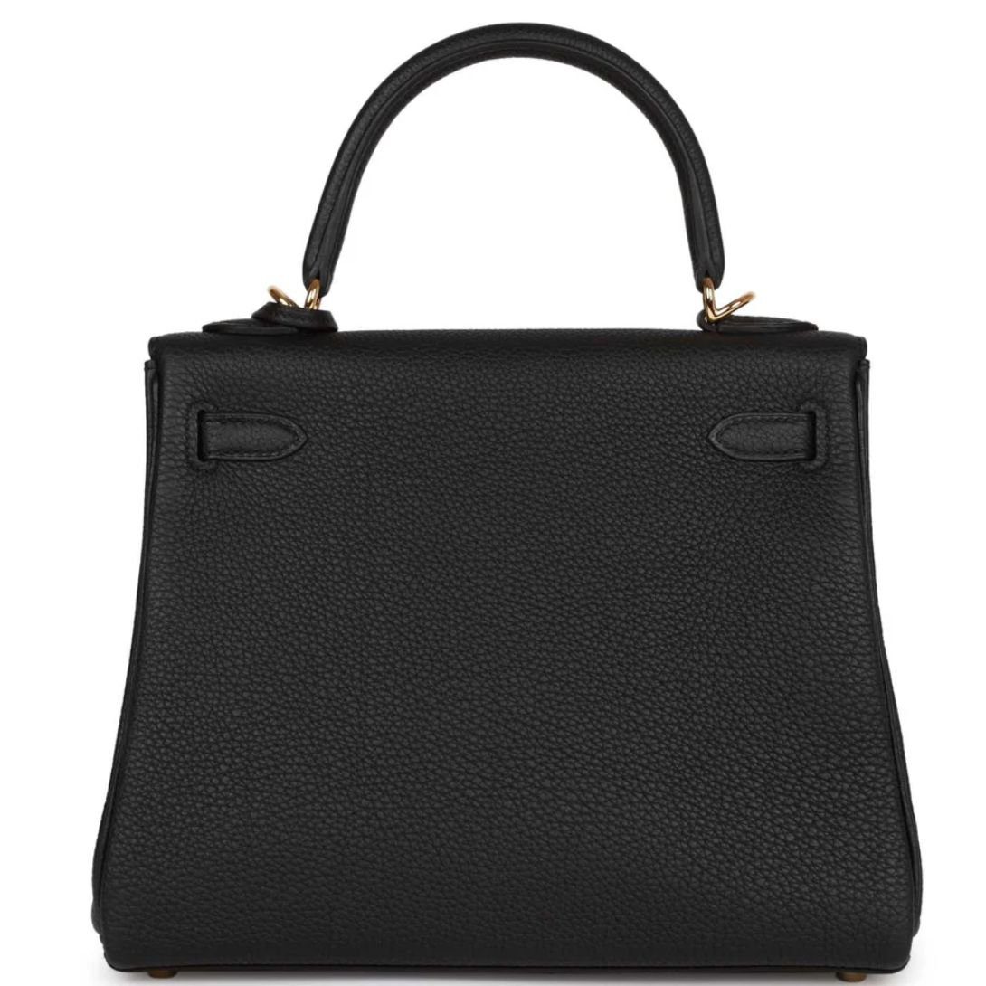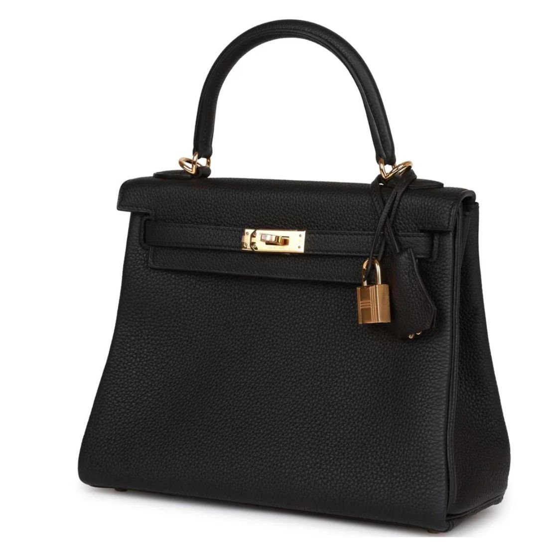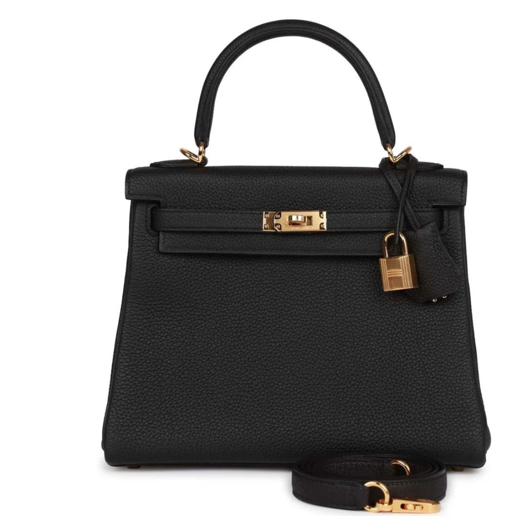 This Kelly in Black togo leather with gold hardware is the ultimate statement piece, blending Hermès’ signature craftsmanship with modern versatility.