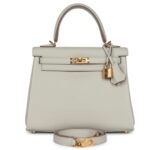 HERMÈS KELLY RETOURNE 25 GRIS PERLE SWIFT GOLD HARDWARE