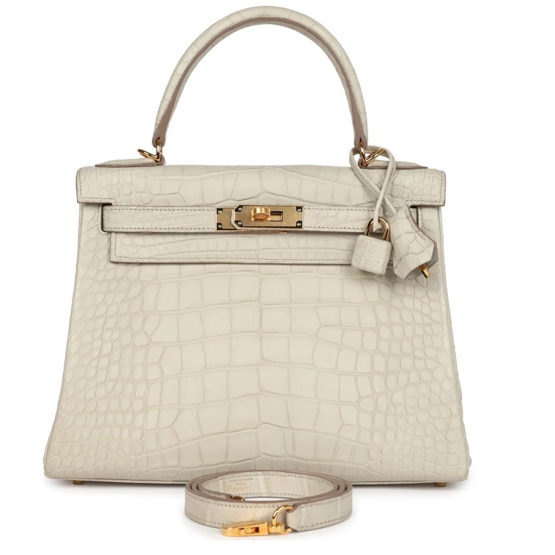 Home BAGS HERMES BAGS HERMÈS KELLY RETOURNE 28 BETON MATTE ALLIGATOR GOLD HARDWARE