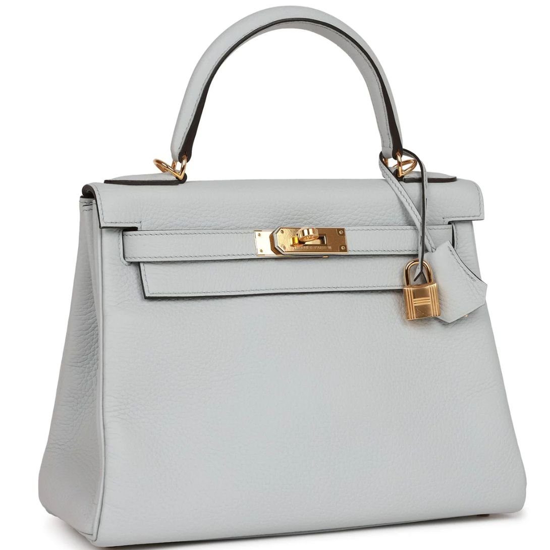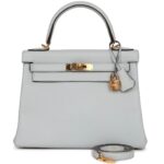 HERMÈS KELLY RETOURNE 28 BLEU PALE CLEMENCE GOLD HARDWARE