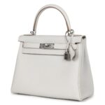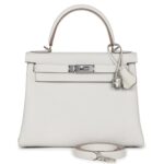The Kelly 28 Retourne blends functionality with iconic design, making it a versatile choice for both formal and everyday wear. Its understated Gris Pale hue and impeccable craftsmanship showcase Hermès’ unparalleled artistry.