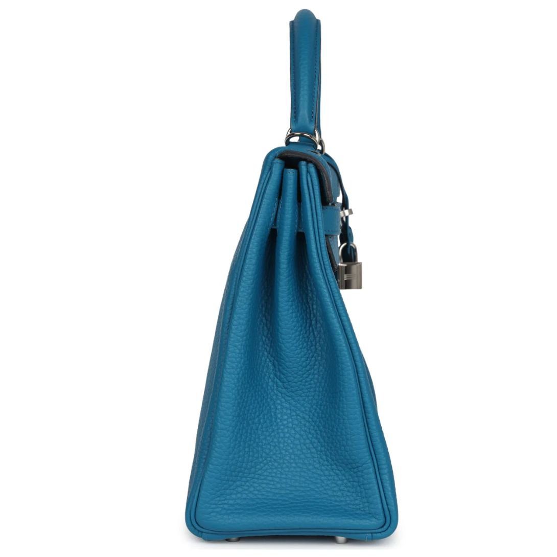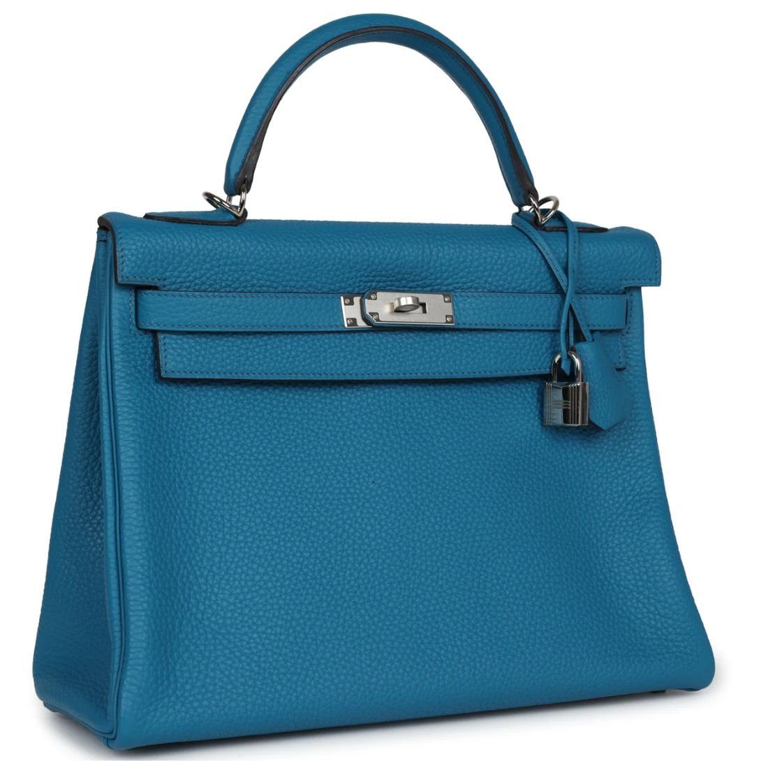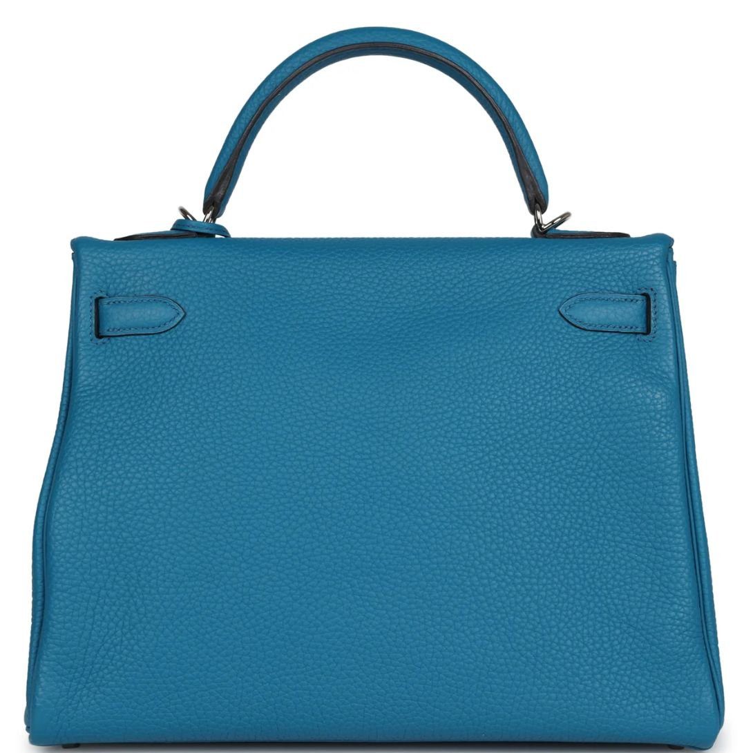 HERMÈS KELLY RETOURNE 32 COBALT CLEMENCE PALLADIUM HARDWARE