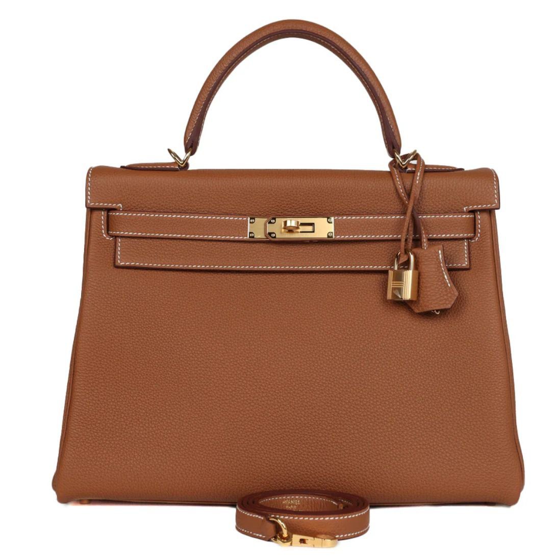 This Hermès Kelly Retourne in Gold togo leather is the epitome of timeless luxury, offering a versatile and elegant design perfect for both everyday use and special occasions.