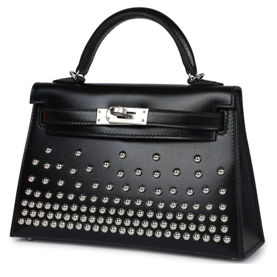 HERMÈS KELLY SELLIER 20 CLOUTÉ BLACK BOX PALLADIUM HARDWARE