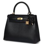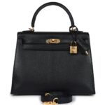 This Kelly in Black chevre mysore leather with gold hardware is a stunning example of Hermès’ craftsmanship, combining elegance with everyday functionality.