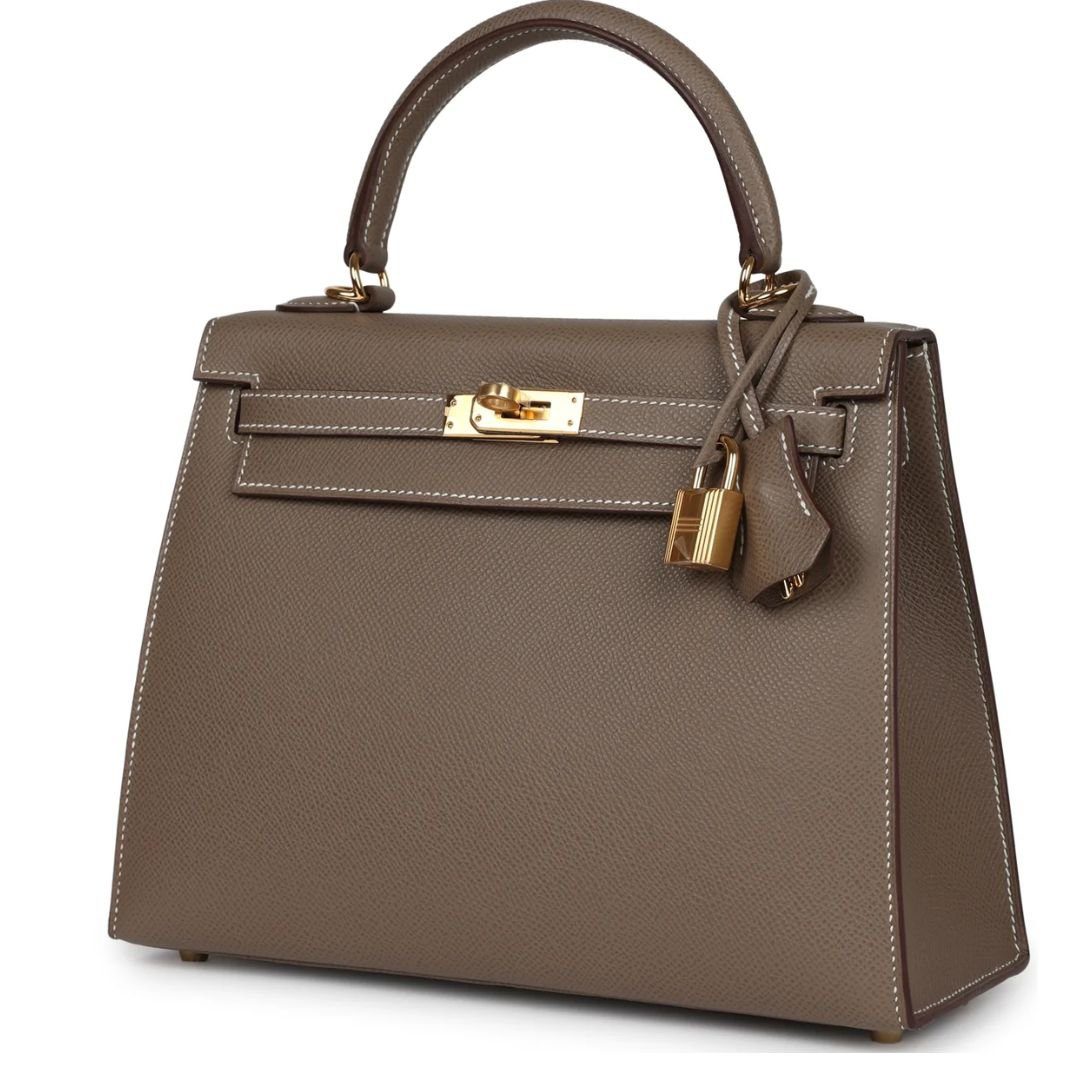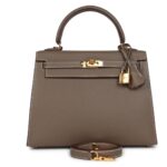 HERMÈS KELLY SELLIER 25 ETOUPE EPSOM GOLD HARDWARE