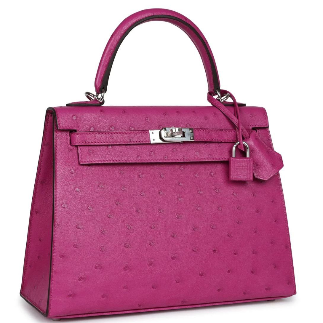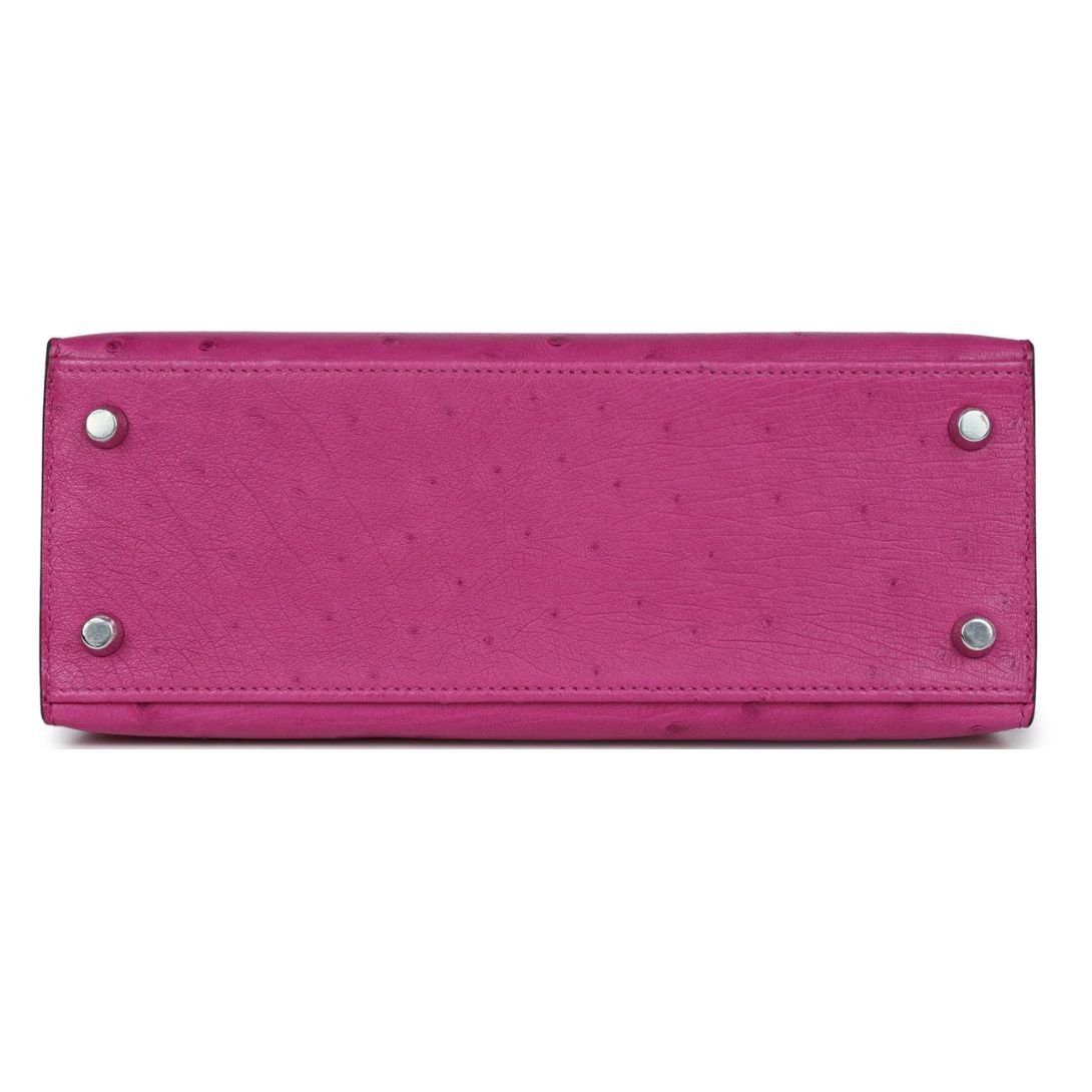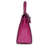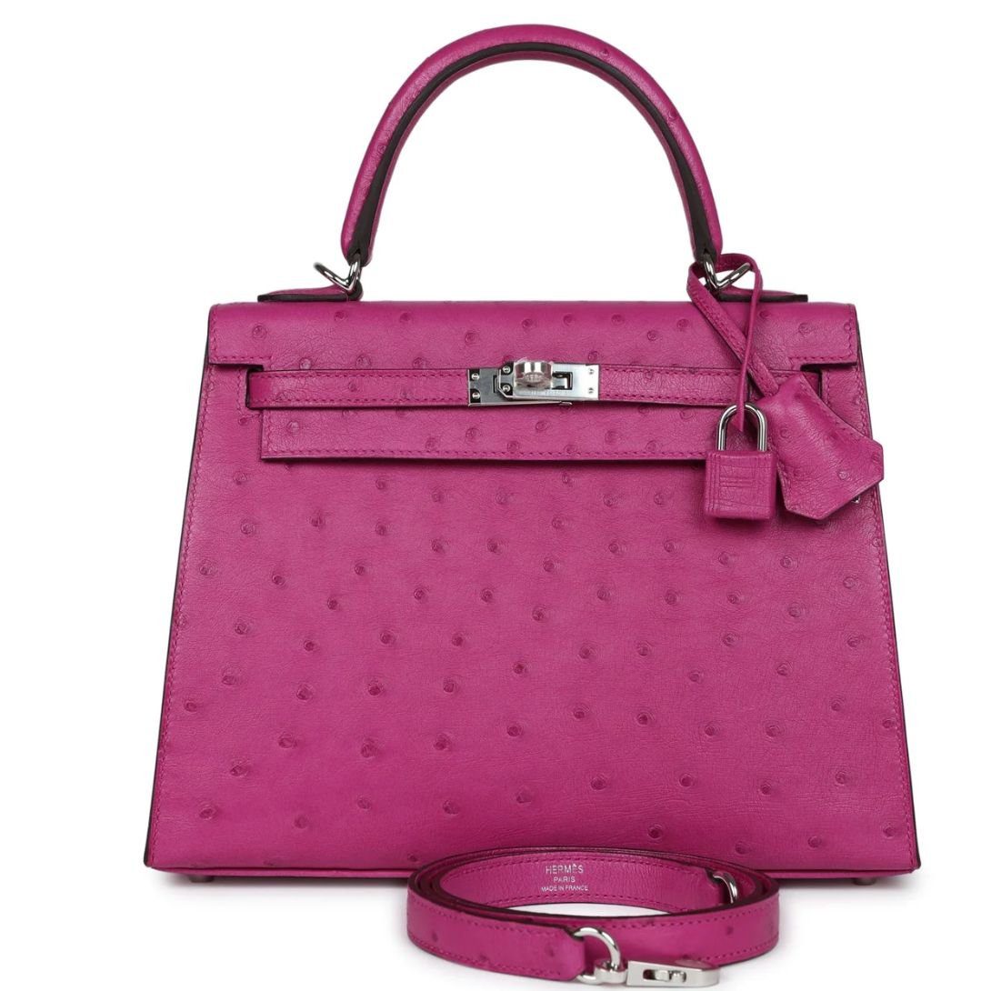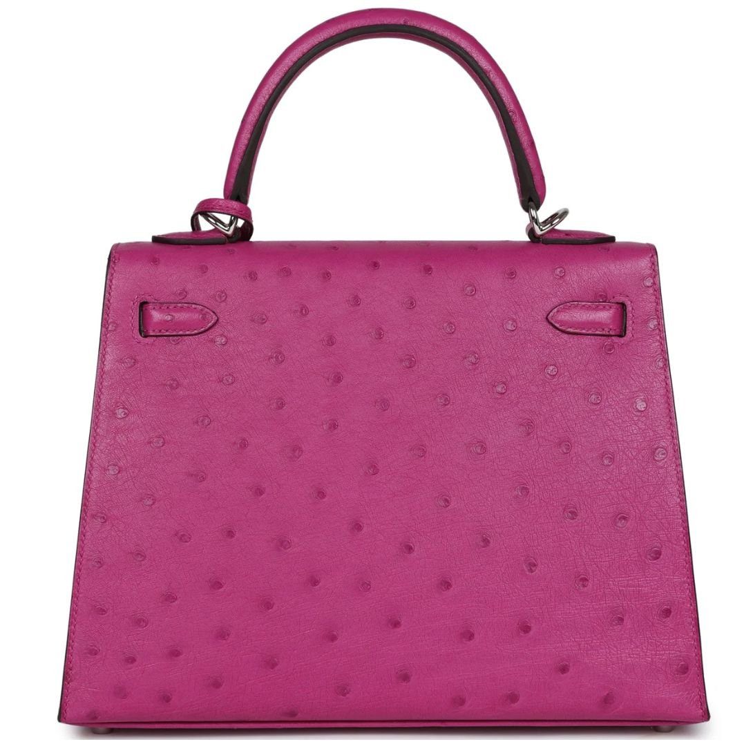 HERMÈS KELLY SELLIER 25 ROSE POURPRE OSTRICH PALLADIUM HARDWARE