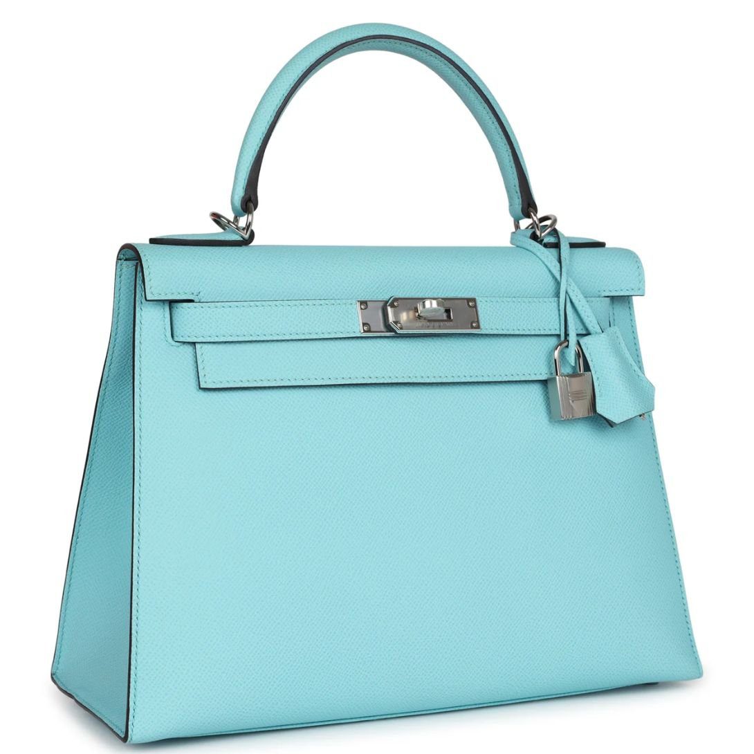 HERMÈS KELLY SELLIER 28 BLEU ATOLL EPSOM PALLADIUM HARDWARE
