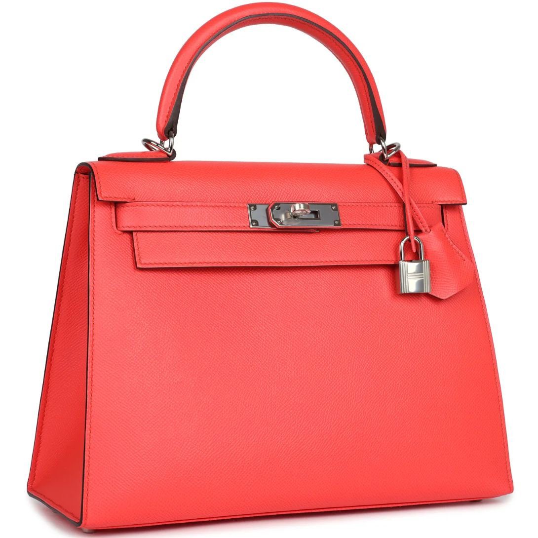 HERMÈS KELLY SELLIER 28 ROSE TEXAS EPSOM PALLADIUM HARDWARE