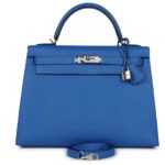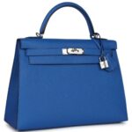 HERMÈS KELLY SELLIER 32 BLEU FRANCE EPSOM PALLADIUM HARDWARE