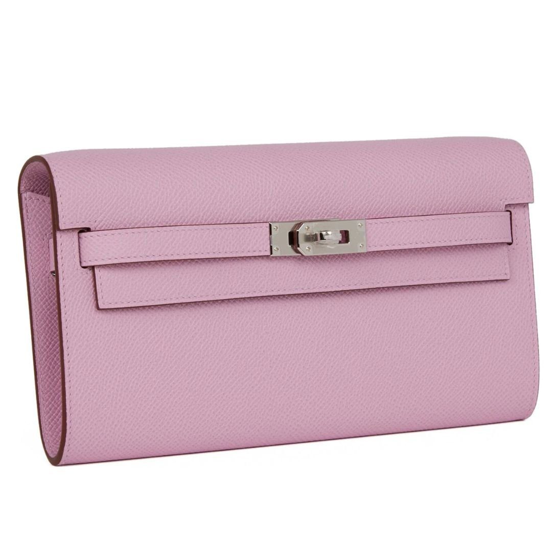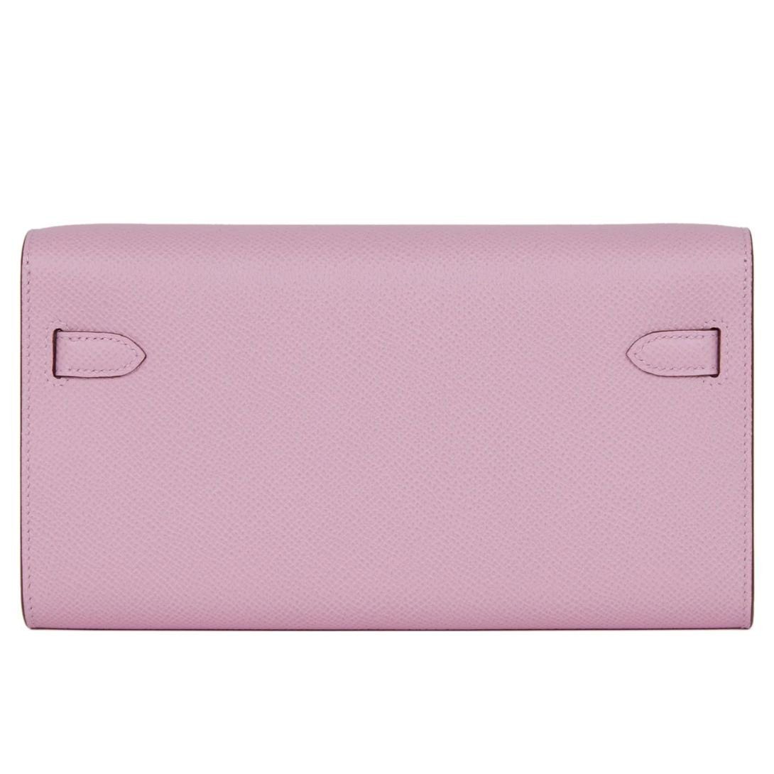 HERMÈS KELLY WALLET TO GO MAUVE SYLVESTRE EPSOM PALLADIUM HARDWARE