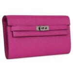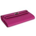 This luxurious Kelly Wallet To Go in Rose Pourpre Chevre Mysore leather is a sophisticated and functional piece, ideal for both everyday use and elegant occasions.