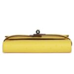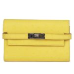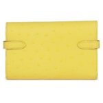 The Kelly Medium Dépliant Wallet offers a perfect balance of style and practicality, with its vibrant Jaune Citron ostrich leather and functional compartments. A sophisticated addition to any luxury collection.
