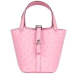 This Micro Picotin Lock in Bubblegum Pink Ostrich leather with palladium hardware is a charming and luxurious miniature rendition of Hermès’ iconic bucket bag. Its petite size and vibrant color make it a perfect statement accessory for any outfit.