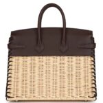 This rare Picnic Birkin Bag is crafted from Rouge Sellier swift leather and Osier wicker, featuring palladium-plated hardware with: