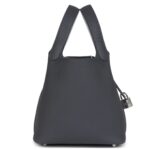 This elegant Eclat Picotin Lock is crafted from a combination of Ardoise Clemence leather and Gris Platine Swift leather, paired with Palladium hardware. The bag features tonal stitching and two top handles, giving it a sophisticated and timeless appeal.