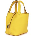 The vibrant Jaune de Naples color, combined with the bag’s practical design and luxurious materials, makes this Picotin Lock a perfect accessory for both casual and refined occasions.