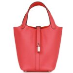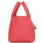 This Picotin Lock is a perfect blend of elegance and practicality, ideal for adding a pop of color to any wardrobe. The Rose Texas Clemence leather offers a soft yet durable finish, while the padlock closure ensures added security for your essentials.