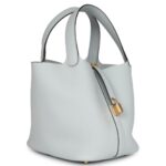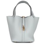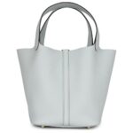 This Picotin is made from Bleu Pale Taurillon clemence leather with gold hardware and features: