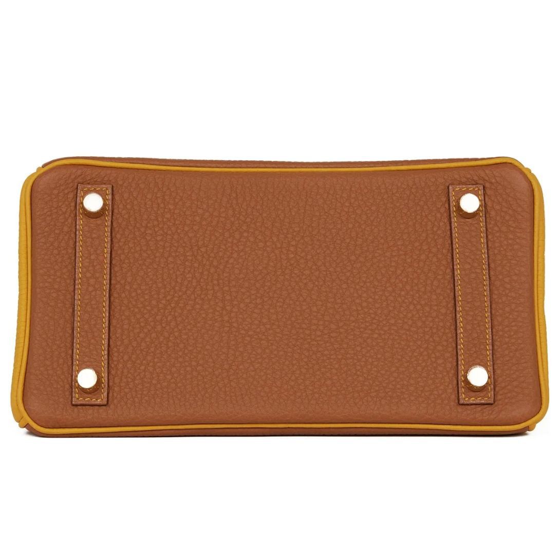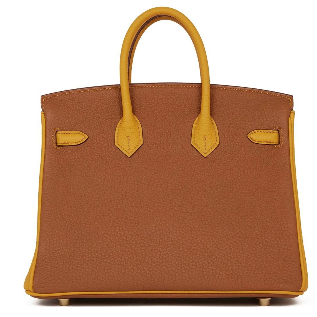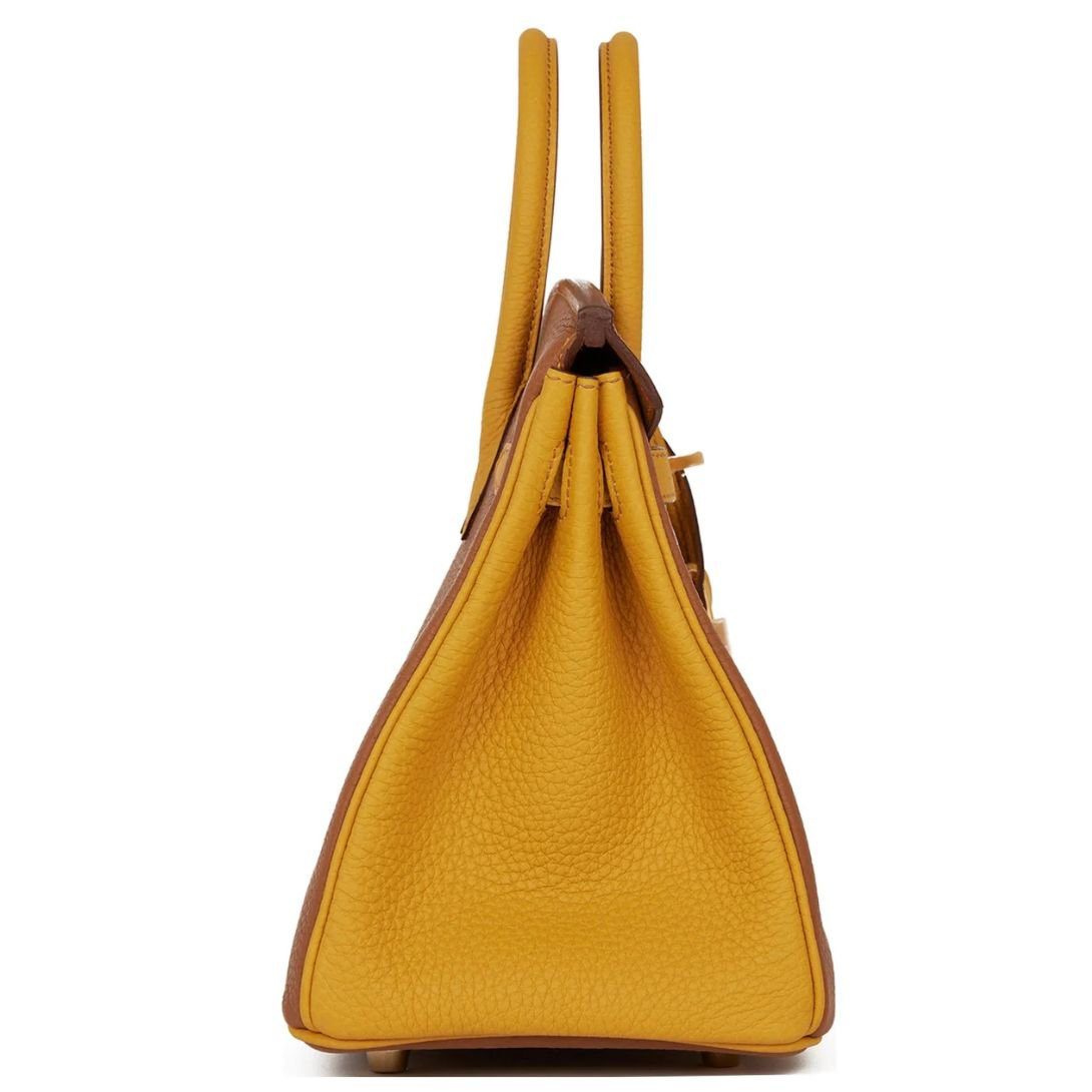 HERMÈS SPECIAL ORDER HSS BIRKIN 25 GOLD AND JAUNE AMBRE TOGO BRUSHED GOLD HARDWARE