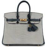 HERMÈS SPECIAL ORDER HSS BIRKIN 25 GRIS PERLE AND VERT ROUSSEAU MATTE ALLIGATOR BRUSHED GOLD HARDWARE