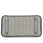 The interior is lined with Vert Rousseau chèvre leather and offers practical organization, including one zip pocket with an Hermès-engraved zipper pull and one open pocket on the opposite side.