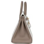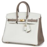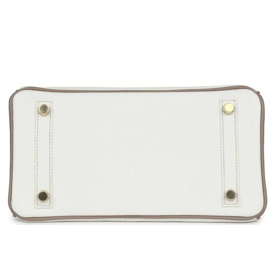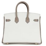 HERMÈS SPECIAL ORDER (HSS) BIRKIN 25 WHITE AND GRIS TOURTERELLE CLEMENCE GOLD HARDWARE
