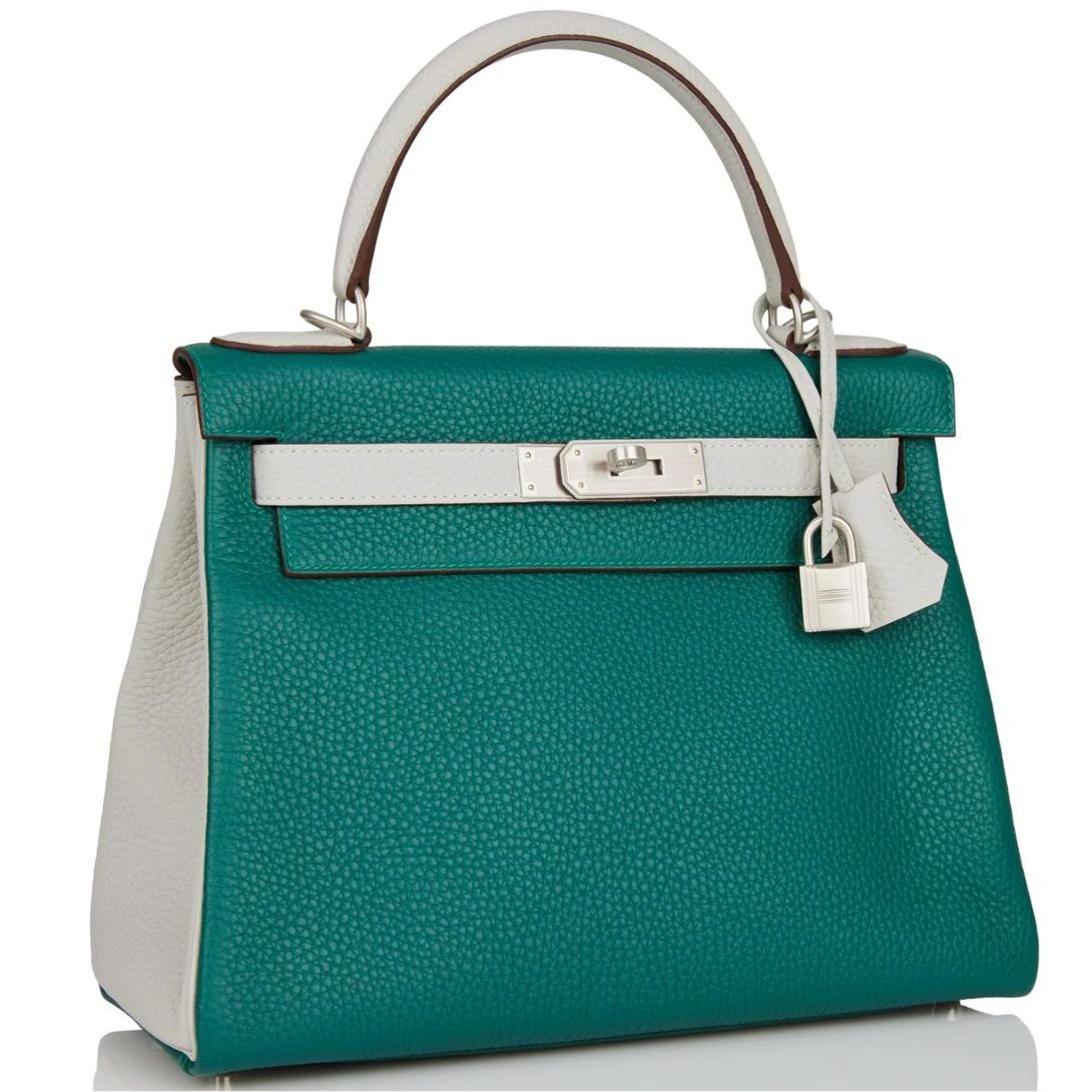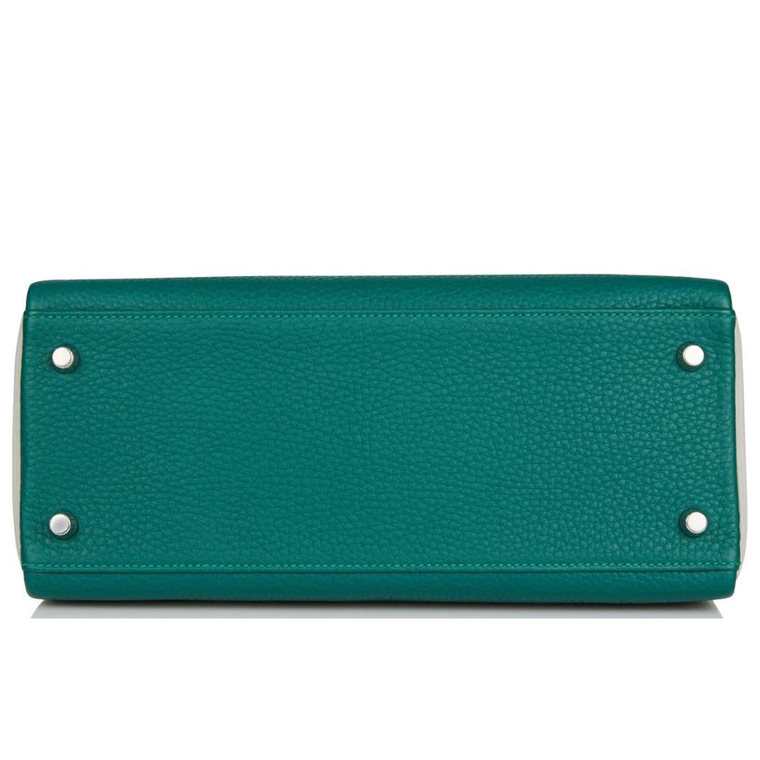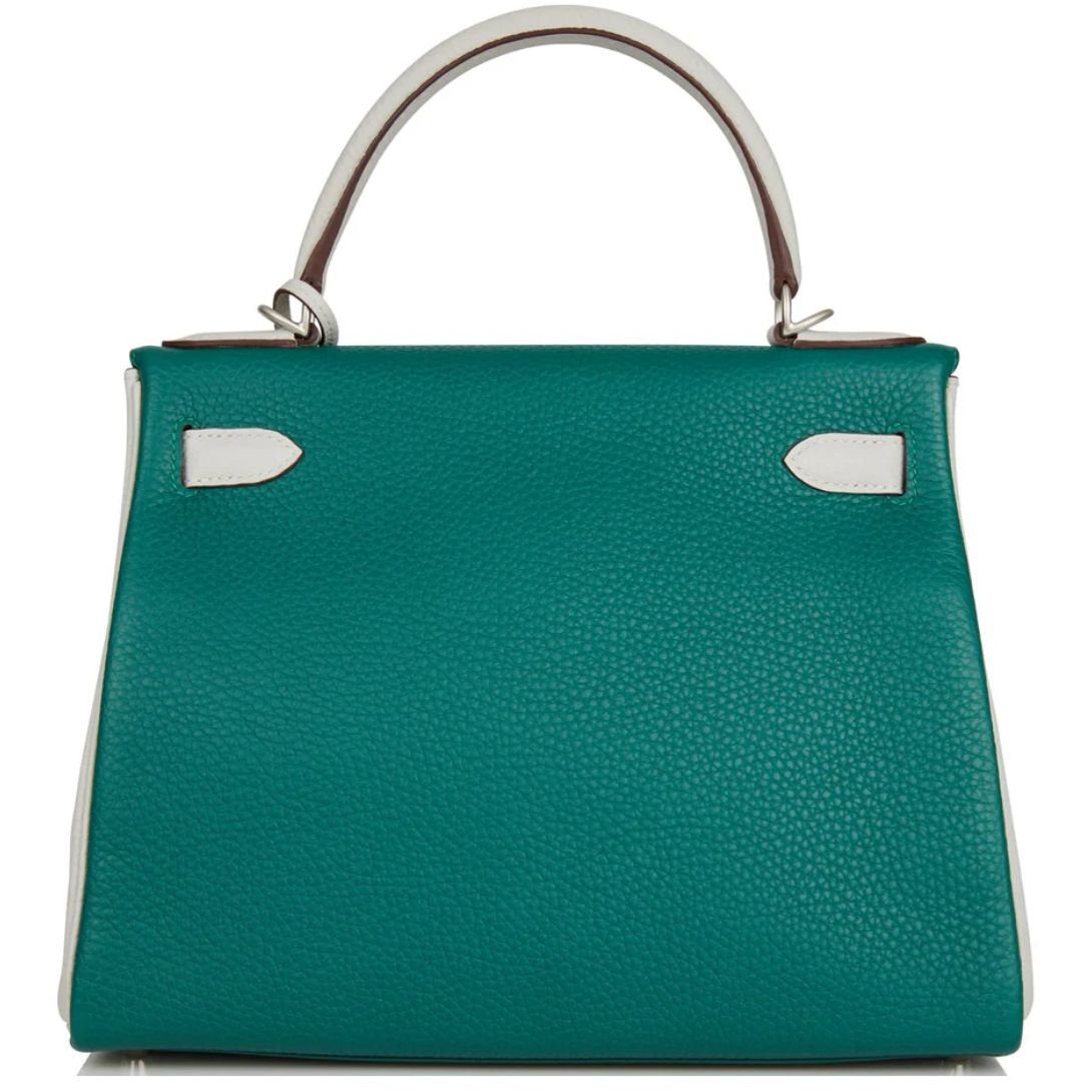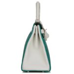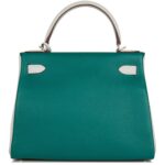 HERMÈS SPECIAL ORDER HSS KELLY RETOURNE 28 MALACHITE AND GRIS PERLE CLEMENCE BRUSHED PALLADIUM HARDWARE