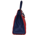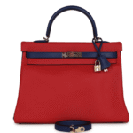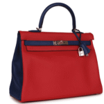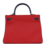 HERMÈS SPECIAL ORDER (HSS) KELLY RETOURNE 35 VERMILLON AND BLEU SAPHIR SWIFT PERMABRASS HARDWARE