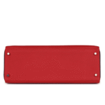 The interior is lined in Vermillion Swift leather and includes one zippered pocket with an Hermès-engraved pull, as well as two open pockets on the opposite side for optimal organization.