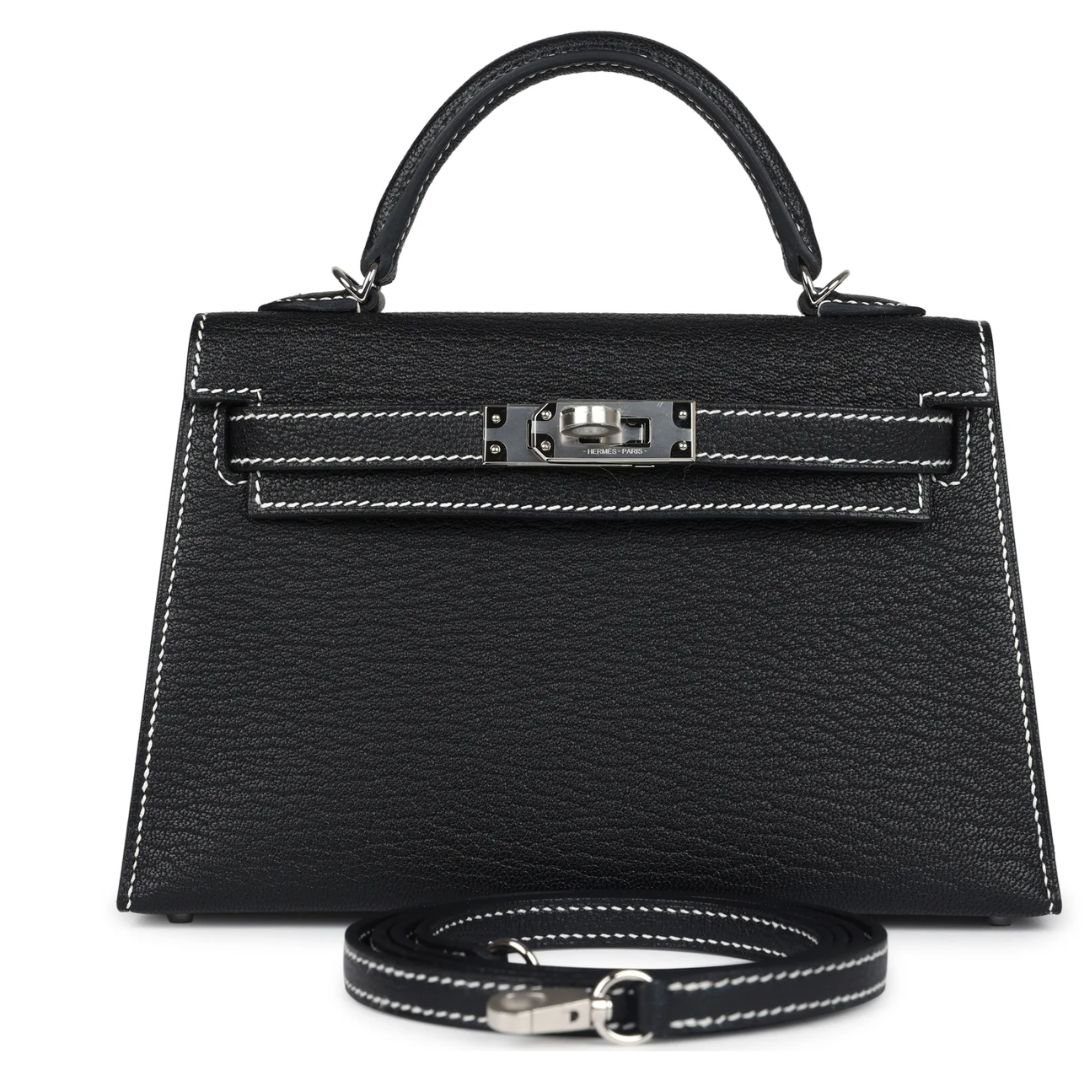 HERMÈS SPECIAL ORDER HSS KELLY SELLIER 20 BLACK CHEVRE MYSORE PALLADIUM HARDWARE