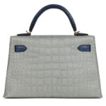 HERMÈS SPECIAL ORDER HSS KELLY SELLIER 20 GRIS PERLE AND BLEU DE MALTE MATTE ALLIGATOR GOLD HARDWARE
