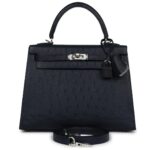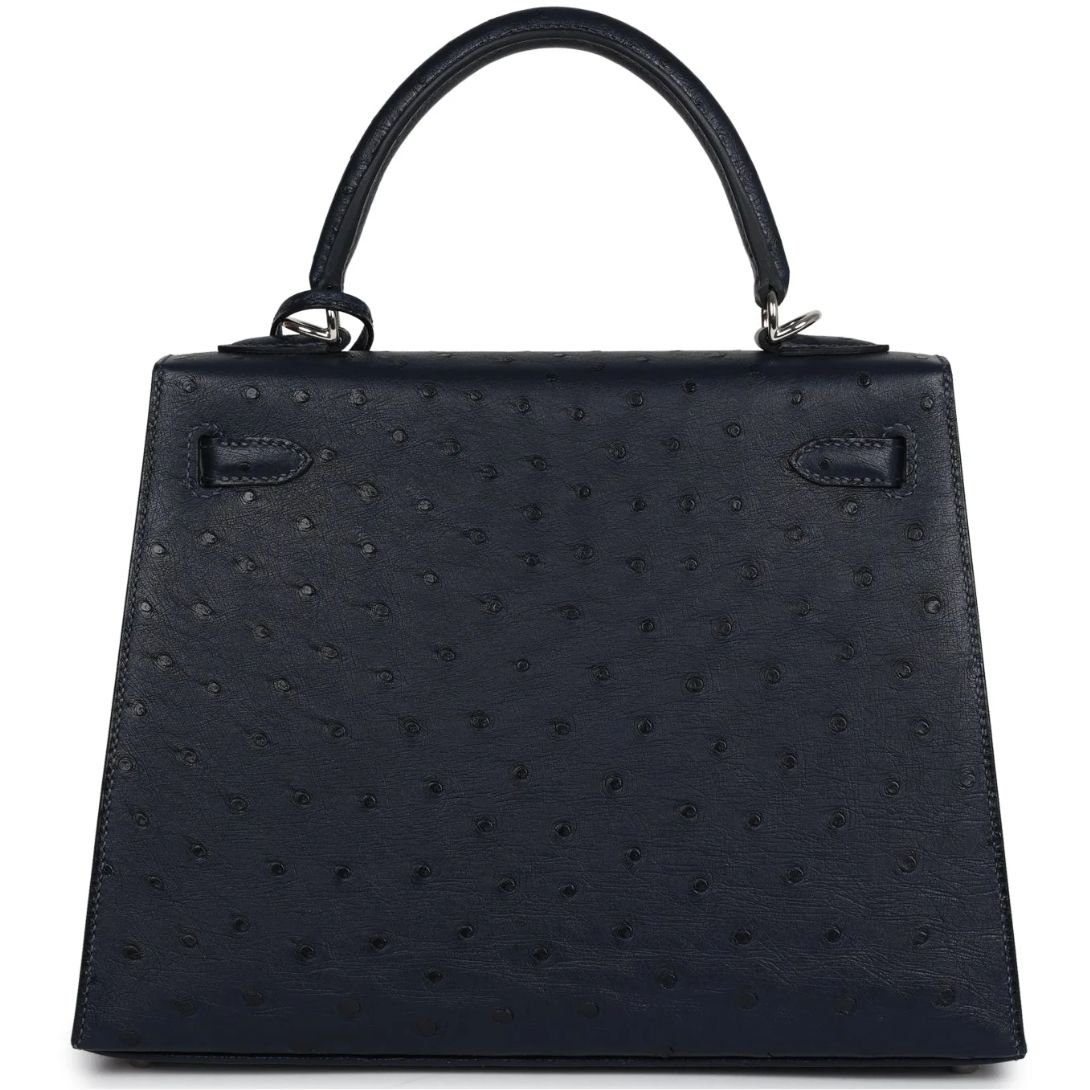 HERMÈS SPECIAL ORDER (HSS) KELLY SELLIER 25 BLEU INDIGO VERSO OSTRICH PALLADIUM HARDWARE